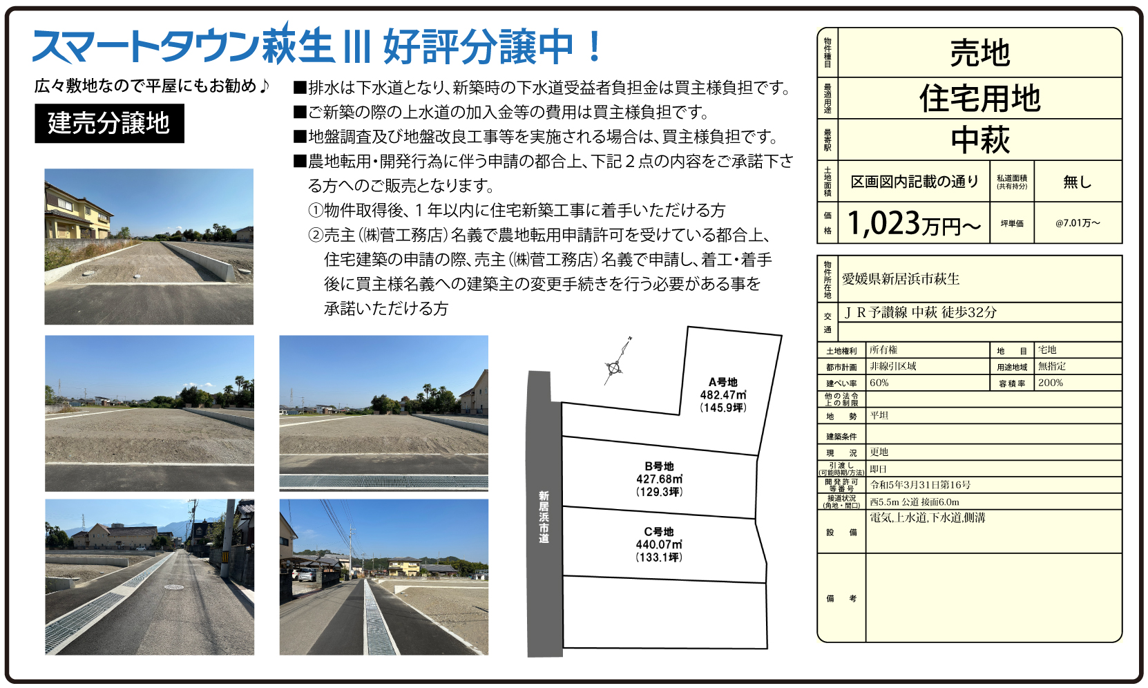 広々敷地なので平屋にもお勧め♪11号線にも近く、西条や四国中央市方面に通勤される方にもお勧めです。